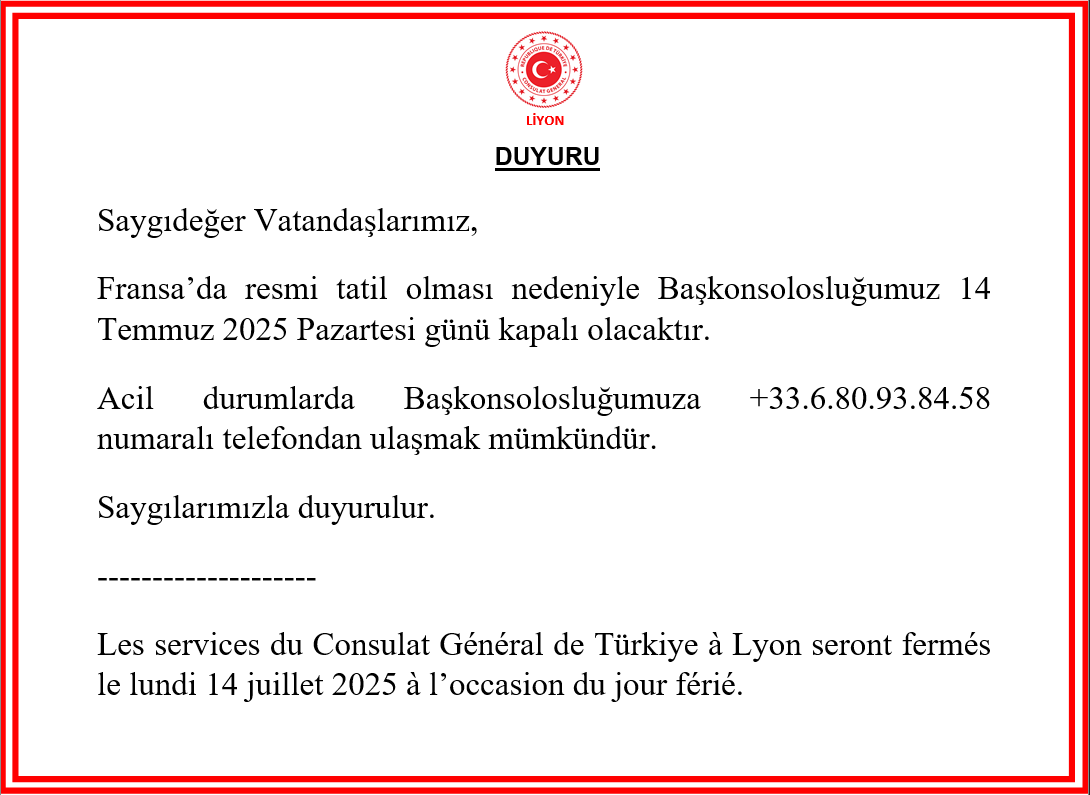 25.12.2025 | Fransa'da Dini Tatil (Noel) |
